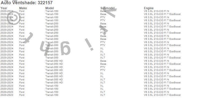 Below is an abbreviated list of applications for the Aeroskin Smoke Hood Protector.Transit-150, Transit-250, Transit-350, Transit-350 HD, Ford, 2024, 2023, 2022, 2021, 2020