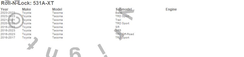 Below is an abbreviated list of applications for the Roll-N-Lock A-Series XT Truck Bed Cover.Tacoma, Toyota, 2023, 2022, 2021, 2020, 2019, 2018, 2017, 2016