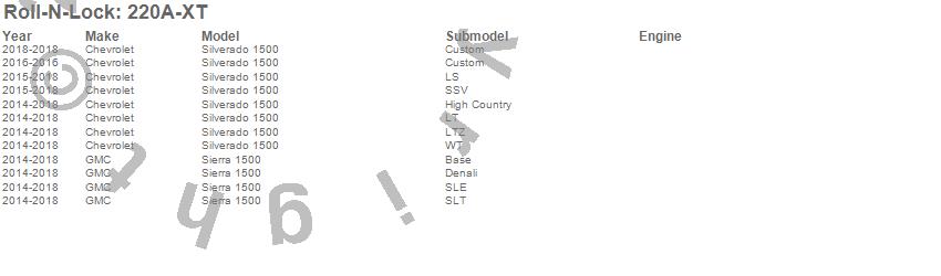 Below is an abbreviated list of applications for the Roll-N-Lock A-Series XT Truck Bed Cover.Sierra 1500, Silverado 1500, Chevrolet, GMC, 2018, 2017, 2016, 2015, 2014