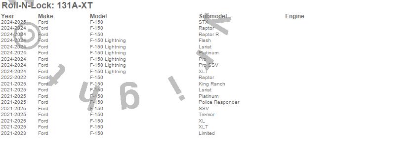 Below is an abbreviated list of applications for the Roll-N-Lock A-Series XT Truck Bed Cover.F-150, F-150 Lightning, Ford, 2025, 2024, 2023, 2022, 2021