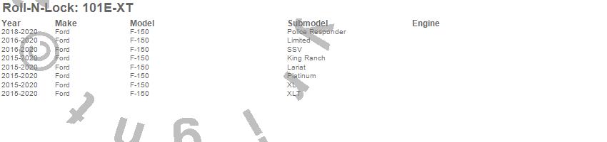 Below is an abbreviated list of applications for the Roll-N-Lock E-Series XT Tonneau Cover.F-150, Ford, 2020, 2019, 2018, 2017, 2016, 2015