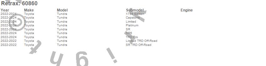 Below is an abbreviated list of applications for the RetraxONE MX Retractable Tonneau Cover.Tundra, Toyota, 2026, 2025, 2024, 2023, 2022