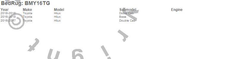 Below is an abbreviated list of applications for the BedRug Tailgate Mat.Hilux, Toyota, 2018, 2017, 2016