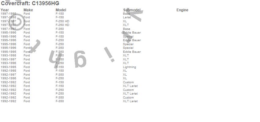 Below is an abbreviated list of applications for the Custom Fit Cab Cover.F-150, F-250, F-250 HD, F-350, Ford, 1998, 1997, 1996, 1995, 1994, 1993, 1992
