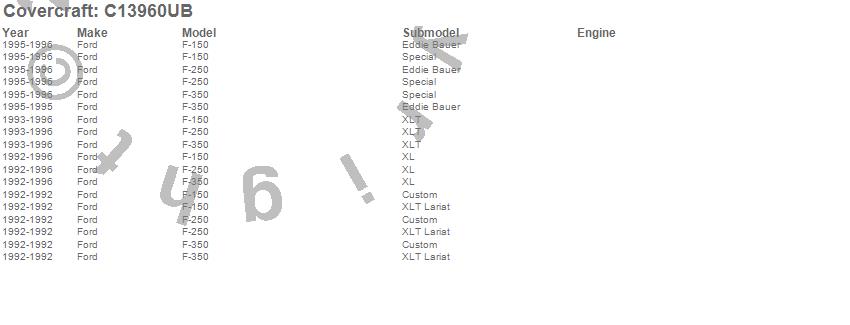 Below is an abbreviated list of applications for the Custom Fit Cab Cover.F-150, F-250, F-350, Ford, 1996, 1995, 1994, 1993, 1992