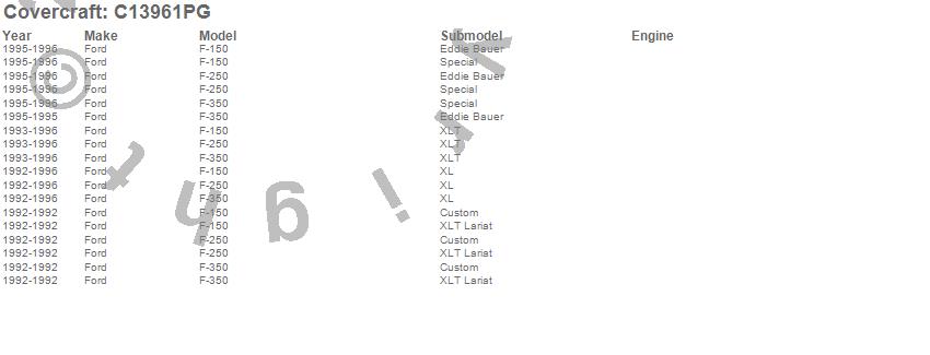 Below is an abbreviated list of applications for the Custom Fit Cab Cover.F-150, F-250, F-350, Ford, 1996, 1995, 1994, 1993, 1992