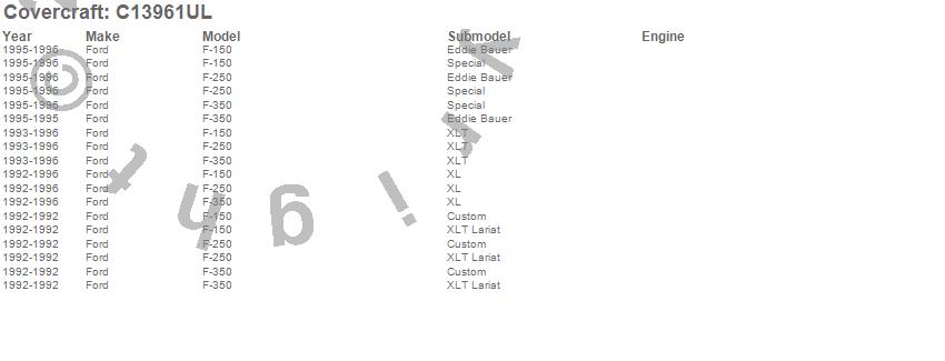 Below is an abbreviated list of applications for the Custom Fit Cab Cover.F-150, F-250, F-350, Ford, 1996, 1995, 1994, 1993, 1992
