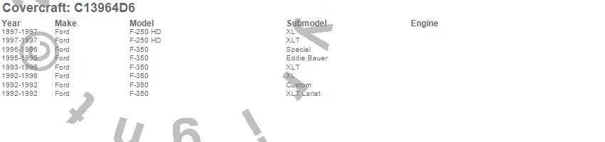 Below is an abbreviated list of applications for the Custom Fit Cab Cover.F-250 HD, F-350, Ford, 1997, 1996, 1995, 1994, 1993, 1992