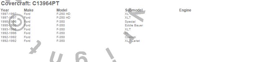 Below is an abbreviated list of applications for the Custom Fit Cab Cover.F-250 HD, F-350, Ford, 1997, 1996, 1995, 1994, 1993, 1992