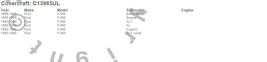 Below is an abbreviated list of applications for the Custom Fit Cab Cover.F-350, Ford, 1995, 1994, 1993, 1992