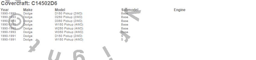 Below is an abbreviated list of applications for the Custom Fit Cab Cover.D150 Pickup, D250 Pickup, D350 Pickup, W150 Pickup, W250 Pickup, W350 Pickup, Dodge, 1993, 1992, 1991, 1990