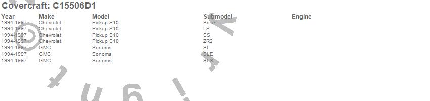 Below is an abbreviated list of applications for the Custom Fit Cab Cover.S10 Pickup, Sonoma, Chevrolet, GMC, 1997, 1996, 1995, 1994