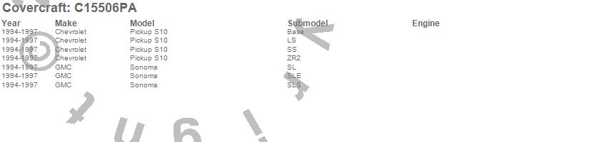 Below is an abbreviated list of applications for the Custom Fit Cab Cover.S10 Pickup, Sonoma, Chevrolet, GMC, 1997, 1996, 1995, 1994