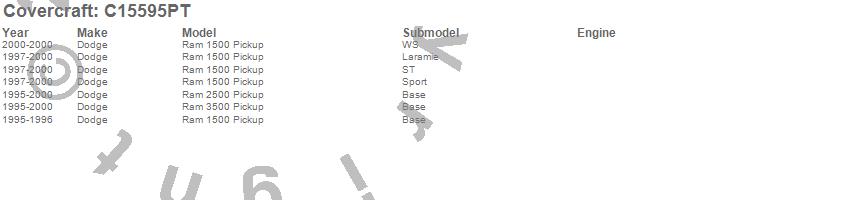 Below is an abbreviated list of applications for the Custom Fit Cab Cover.Ram 1500, Ram 2500, Ram 3500, Dodge, 2000, 1999, 1998, 1997, 1996, 1995