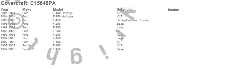 Below is an abbreviated list of applications for the Custom Fit Cab Cover.F-150, F-150 Heritage, F-250, Ford, 2004, 2003, 2002, 2001, 2000, 1999, 1998, 1997