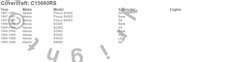 Below is an abbreviated list of applications for the Custom Fit Cab Cover.B2300, B3000, B4000, Mazda, 1997, 1996, 1995, 1994