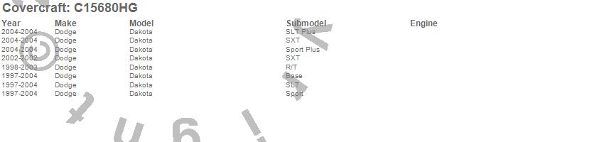 Below is an abbreviated list of applications for the Custom Fit Cab Cover.Dakota, Dodge, 2004, 2003, 2002, 2001, 2000, 1999, 1998, 1997