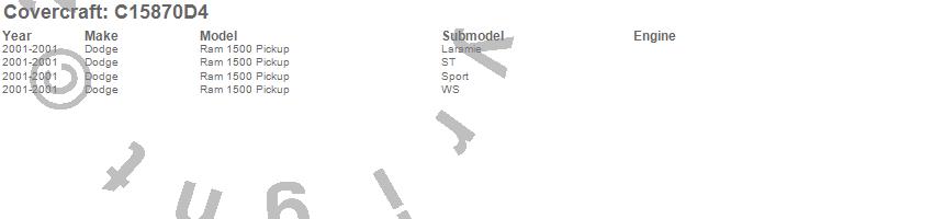 Below is an abbreviated list of applications for the Custom Fit Cab Cover.Ram 1500, Dodge, 2001
