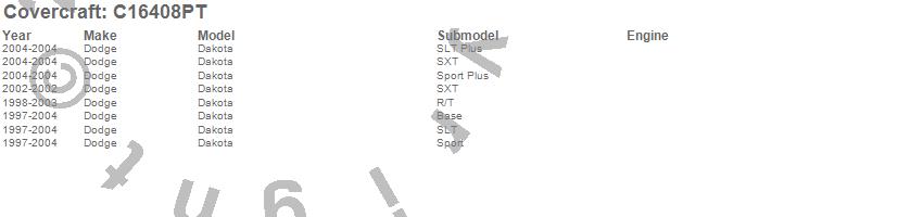 Below is an abbreviated list of applications for the Custom Fit Cab Cover.Dakota, Dodge, 2004, 2003, 2002, 2001, 2000, 1999, 1998, 1997