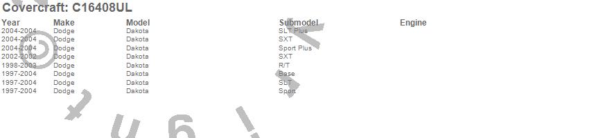 Below is an abbreviated list of applications for the Custom Fit Cab Cover.Dakota, Dodge, 2004, 2003, 2002, 2001, 2000, 1999, 1998, 1997