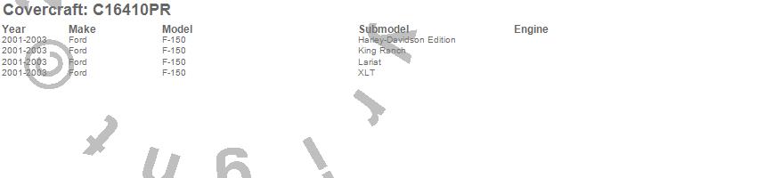 Below is an abbreviated list of applications for the Custom Fit Cab Cover.F-150, Ford, 2003, 2002, 2001