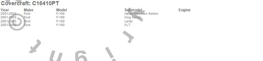 Below is an abbreviated list of applications for the Custom Fit Cab Cover.F-150, Ford, 2003, 2002, 2001