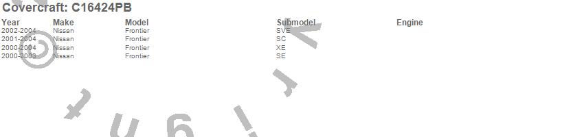 Below is an abbreviated list of applications for the Custom Fit Cab Cover.Frontier, Nissan, 2004, 2003, 2002, 2001, 2000