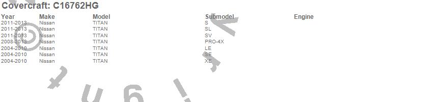 Below is an abbreviated list of applications for the Custom Fit Cab Cover.TITAN, Nissan, 2013, 2012, 2011, 2010, 2009, 2008, 2007, 2006, 2005, 2004
