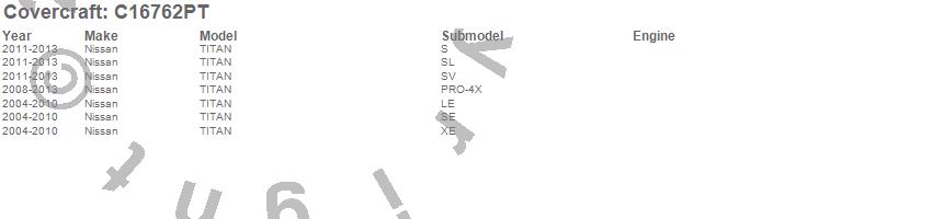 Below is an abbreviated list of applications for the Custom Fit Cab Cover.TITAN, Nissan, 2013, 2012, 2011, 2010, 2009, 2008, 2007, 2006, 2005, 2004