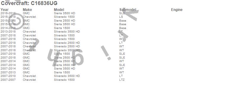 Below is an abbreviated list of applications for the Custom Fit Cab Cover.Sierra 1500, Sierra 2500 HD, Sierra 3500 HD, Silverado 1500, Silverado 2500 HD, Silverado 3500 HD, Chevrolet, GMC, 2018, 2017, 2016, 2015, 2014, 2013, 2012, 2011, 2010, 2009, 2008, 2007