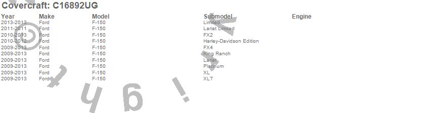 Below is an abbreviated list of applications for the Custom Fit Cab Cover.F-150, Ford, 2013, 2012, 2011, 2010, 2009