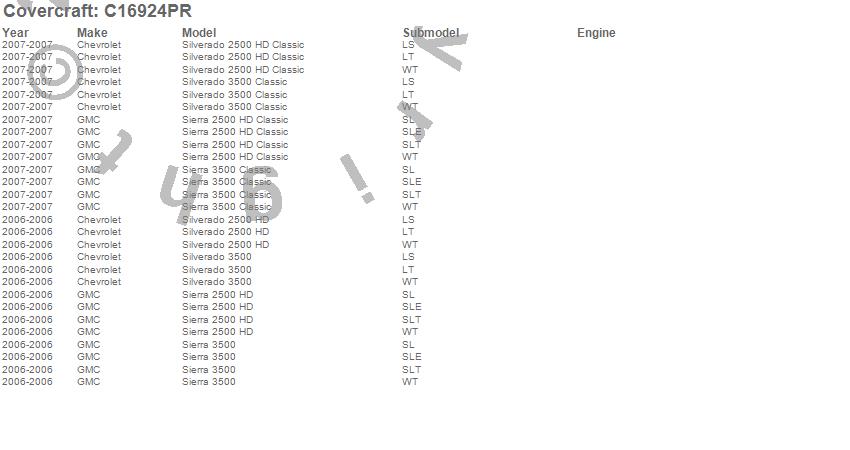 Below is an abbreviated list of applications for the Custom Fit Cab Cover.Sierra 2500 HD, Sierra 2500 HD Classic, Sierra 3500, Sierra 3500 Classic, Silverado 2500 HD, Silverado 2500 HD Classic, Silverado 3500, Silverado 3500 Classic, Chevrolet, GMC, 2007, 2006
