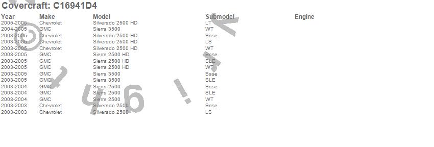Below is an abbreviated list of applications for the Custom Fit Cab Cover.Sierra 2500, Sierra 2500 HD, Sierra 3500, Silverado 2500, Silverado 2500 HD, Chevrolet, GMC, 2005, 2004, 2003