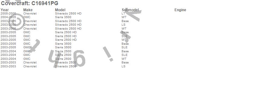 Below is an abbreviated list of applications for the Custom Fit Cab Cover.Sierra 2500, Sierra 2500 HD, Sierra 3500, Silverado 2500, Silverado 2500 HD, Chevrolet, GMC, 2005, 2004, 2003