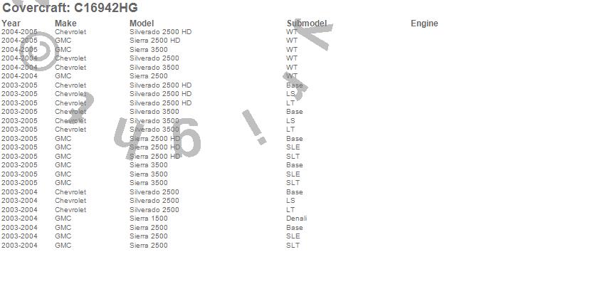 Below is an abbreviated list of applications for the Custom Fit Cab Cover.Sierra 1500, Sierra 2500, Sierra 2500 HD, Sierra 3500, Silverado 2500, Silverado 2500 HD, Silverado 3500, Chevrolet, GMC, 2005, 2004, 2003