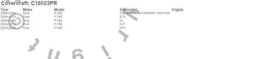 Below is an abbreviated list of applications for the Custom Fit Cab Cover.F-150, Ford, 2013, 2012, 2011, 2010, 2009, 2008, 2007, 2006, 2005, 2004