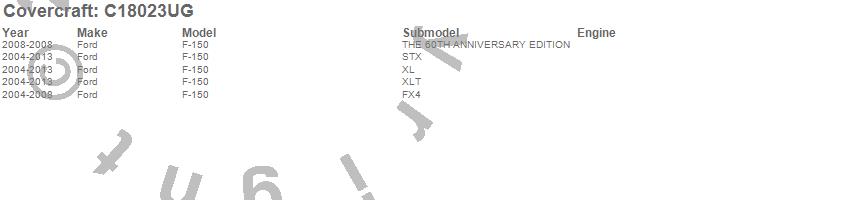 Below is an abbreviated list of applications for the Custom Fit Cab Cover.F-150, Ford, 2013, 2012, 2011, 2010, 2009, 2008, 2007, 2006, 2005, 2004