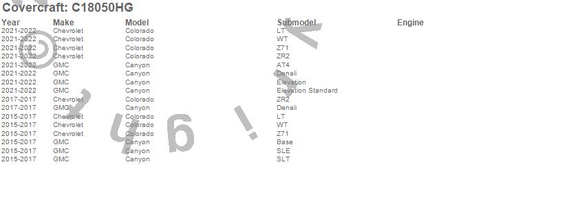Below is an abbreviated list of applications for the Custom Fit Cab Cover.Canyon, Colorado, Chevrolet, GMC, 2022, 2021, 2017, 2016, 2015