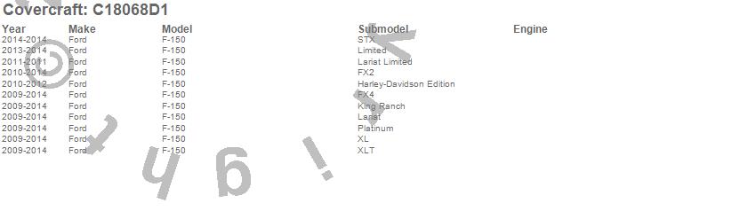 Below is an abbreviated list of applications for the Custom Fit Cab Cover.F-150, Ford, 2014, 2013, 2012, 2011, 2010, 2009