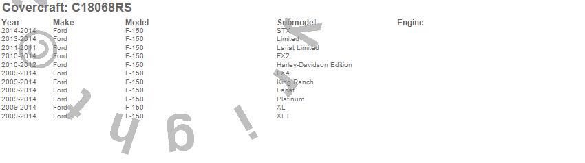 Below is an abbreviated list of applications for the Custom Fit Cab Cover.F-150, Ford, 2014, 2013, 2012, 2011, 2010, 2009