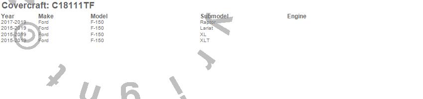 Below is an abbreviated list of applications for the Custom Fit Cab Cover.F-150, Ford, 2019, 2018, 2017, 2016, 2015