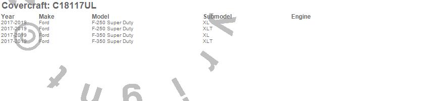Below is an abbreviated list of applications for the Custom Fit Cab Cover.F-250 Super Duty, F-350 Super Duty, Ford, 2019, 2018, 2017