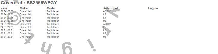 Below is an abbreviated list of applications for the SeatSaver Custom Seat Cover.Trailblazer, Chevrolet, 2025, 2024, 2021