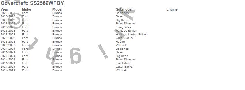 Below is an abbreviated list of applications for the SeatSaver Custom Seat Cover.Bronco, Ford, 2025, 2024, 2023, 2021