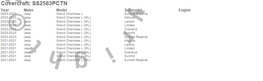 Below is an abbreviated list of applications for the SeatSaver Custom Seat Cover.Grand Cherokee, Grand Cherokee (WK2), Grand Cherokee (WL), Grand Cherokee L, Grand Cherokee L (WL), Jeep, 2025, 2024, 2023, 2021