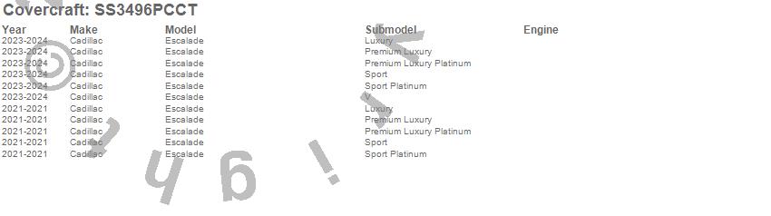 Below is an abbreviated list of applications for the SeatSaver Custom Seat Cover.Escalade, Escalade ESV, Cadillac, 2025, 2024, 2023, 2021