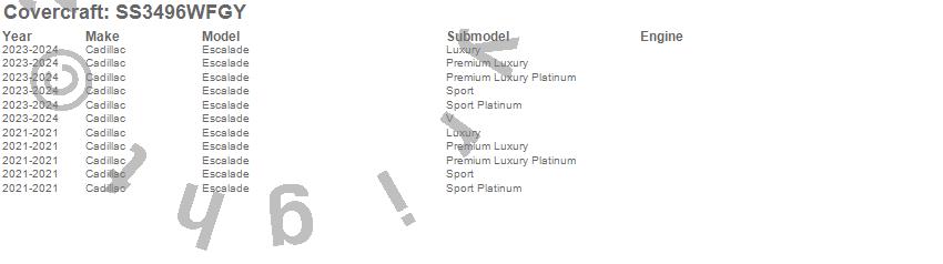 Below is an abbreviated list of applications for the SeatSaver Custom Seat Cover.Escalade, Escalade ESV, Cadillac, 2025, 2024, 2023, 2021