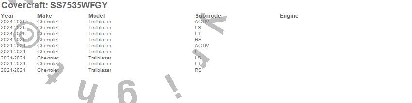 Below is an abbreviated list of applications for the SeatSaver Custom Seat Cover.Trailblazer, Chevrolet, 2025, 2024, 2021