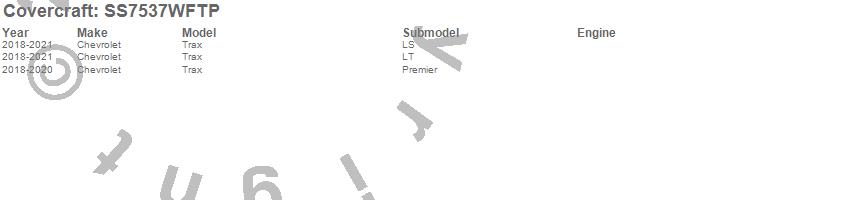 Below is an abbreviated list of applications for the SeatSaver Custom Seat Cover.Trax, Chevrolet, 2021, 2020, 2019, 2018