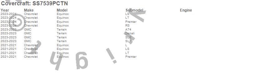 Below is an abbreviated list of applications for the SeatSaver Custom Seat Cover.Equinox, Terrain, Chevrolet, GMC, 2024, 2023, 2021